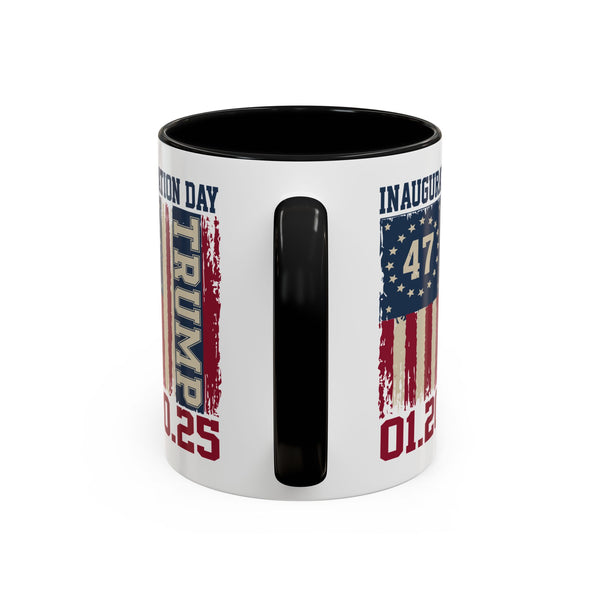 This Donald Trump 47th Presidential Inauguration Coffee Mug exudes a patriotic and political vibe. Perfect for supporters or collectors of presidential memorabilia. Ideal for sipping coffee or tea while reflecting on historical events. Relevant for Presidential Inauguration Day celebrations, political gatherings, or as a gift for history buffs.