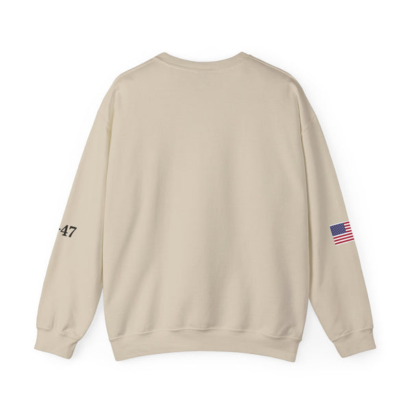 Stay warm and bold with the Trump 45-47 heavy blend crewneck sweatshirt. Made with a durable cotton/poly blend, this soft and cozy sweater is perfect for everyday wear. Featuring a strong USA 45-47 print, it’s ideal for MAGA fans, patriotic holidays, or casual winter outfits. A must-have for Trump 2024–2028 supporters looking for comfort and style in one.